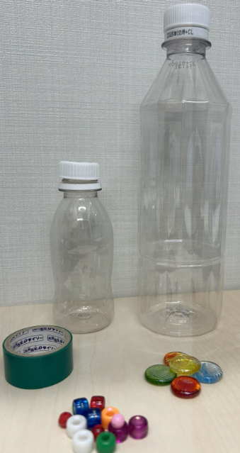 ・容器に入れる小物(ビーズ、おはじき、ボタン、ポンポン、ぷよぷよボール、アルミホイル、ラメ、スパンコール等)